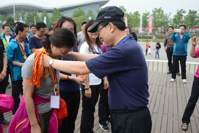 9點(diǎn)30分,健步走活動(dòng)開始。40多分鐘后,60多名黨員干部一個(gè)不拉地走過終點(diǎn)。王耀等部領(lǐng)導(dǎo)分別給獲得男女前10名的同志頒獎(jiǎng)。