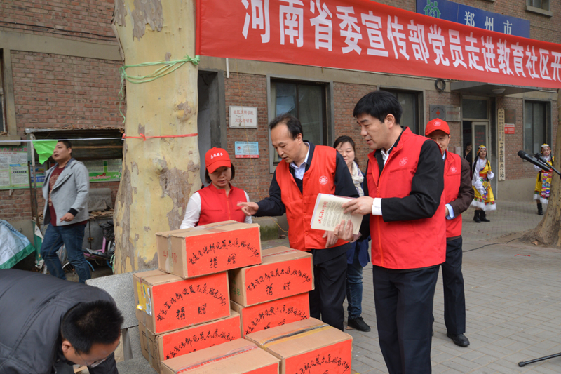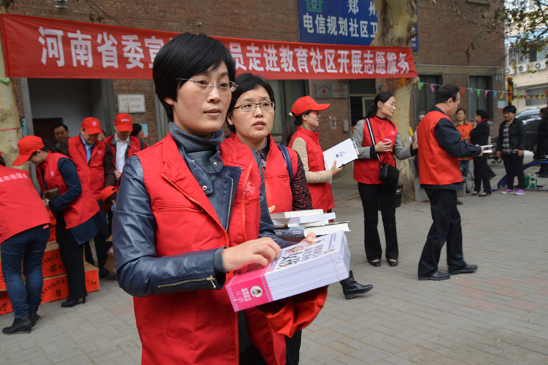 10月31日下午,一場精彩的小型文藝演出在鄭州市緯五路省教育社區(qū)舉行。演出期間,志愿者向現(xiàn)場觀看的居民免費(fèi)贈(zèng)送圖書、報(bào)紙和DVD。據(jù)了解,這是省委宣傳部開展的黨員志愿服務(wù)進(jìn)社區(qū)活動(dòng)。