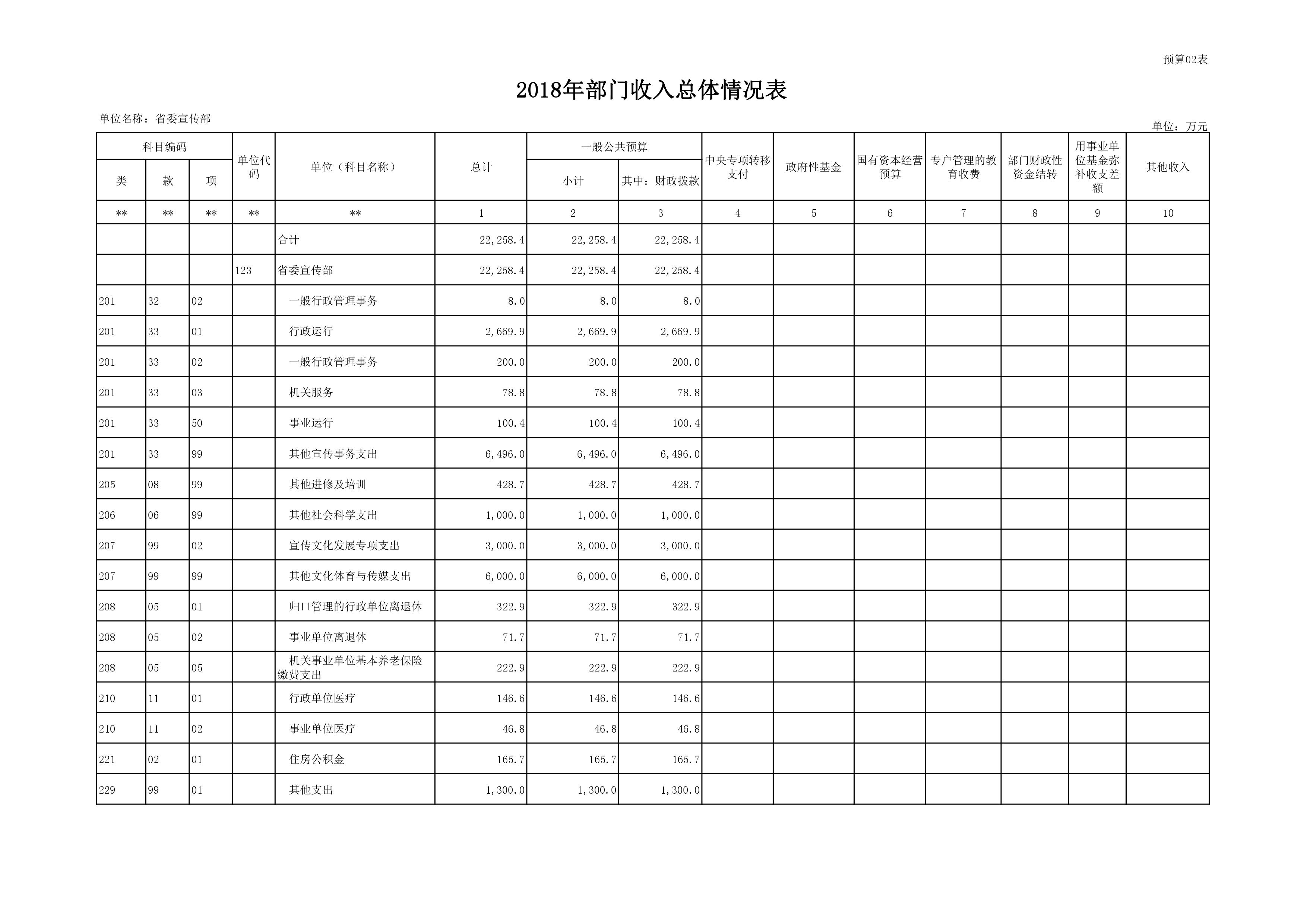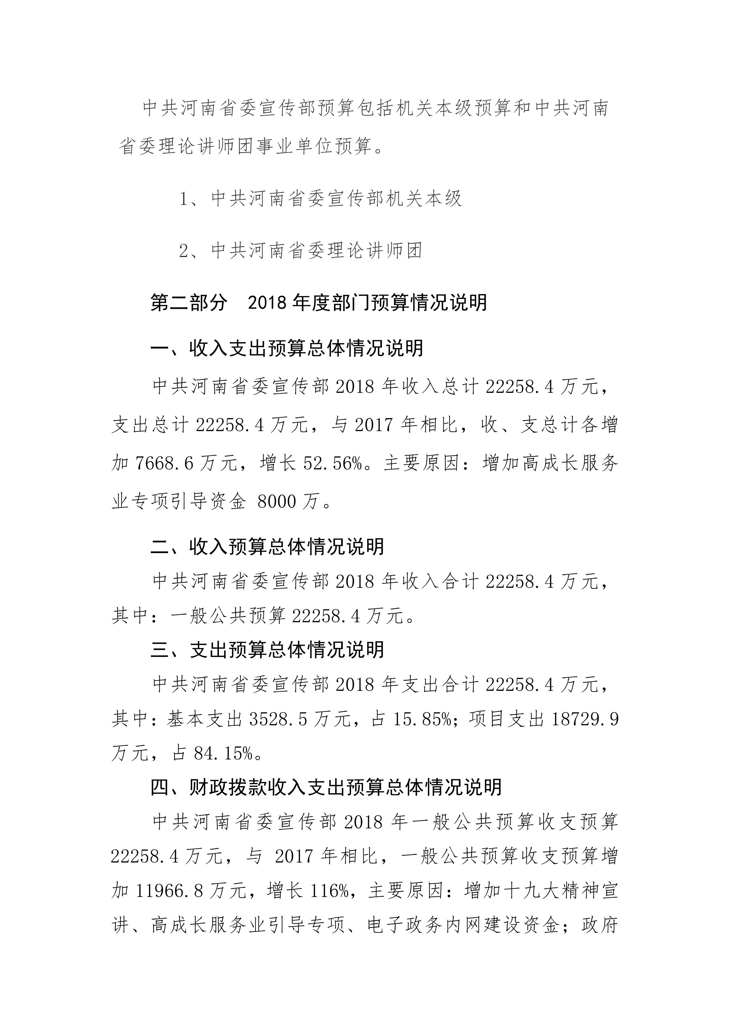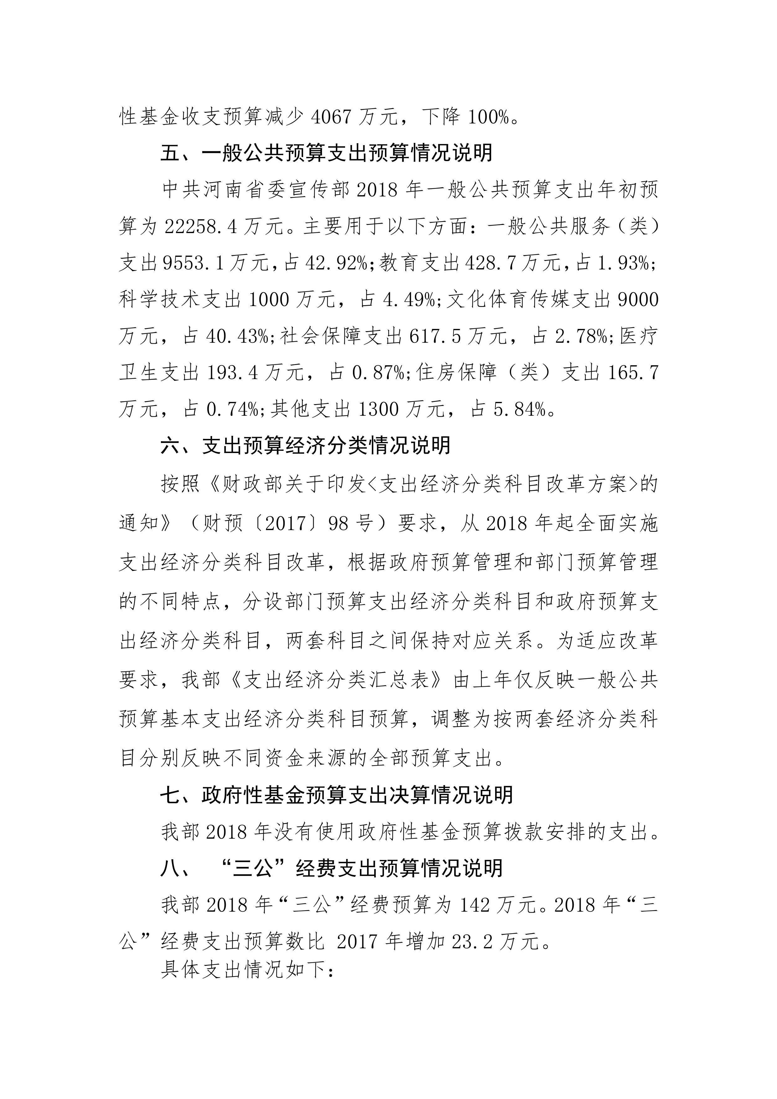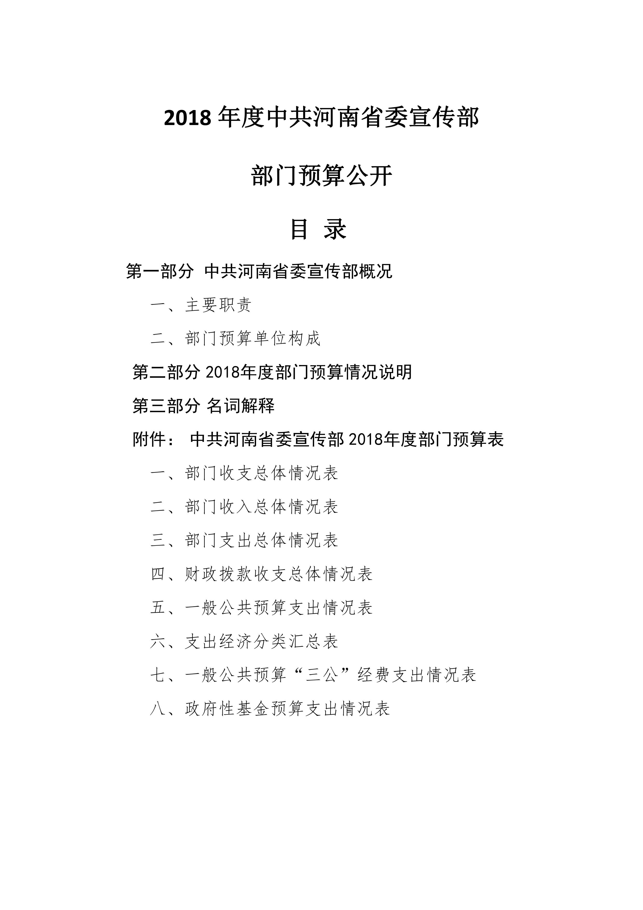 2018年度中共河南省委宣傳部部門預算公開