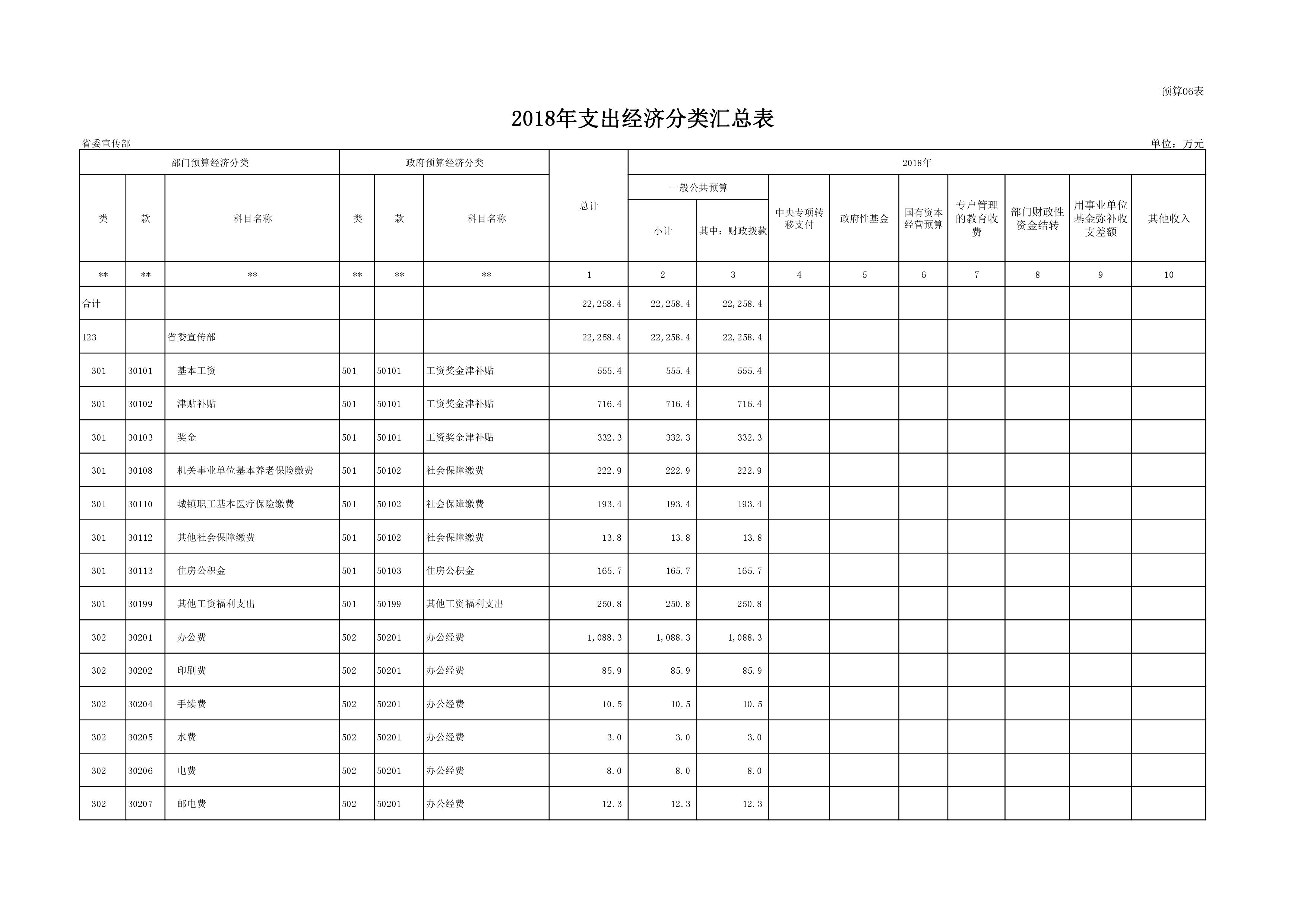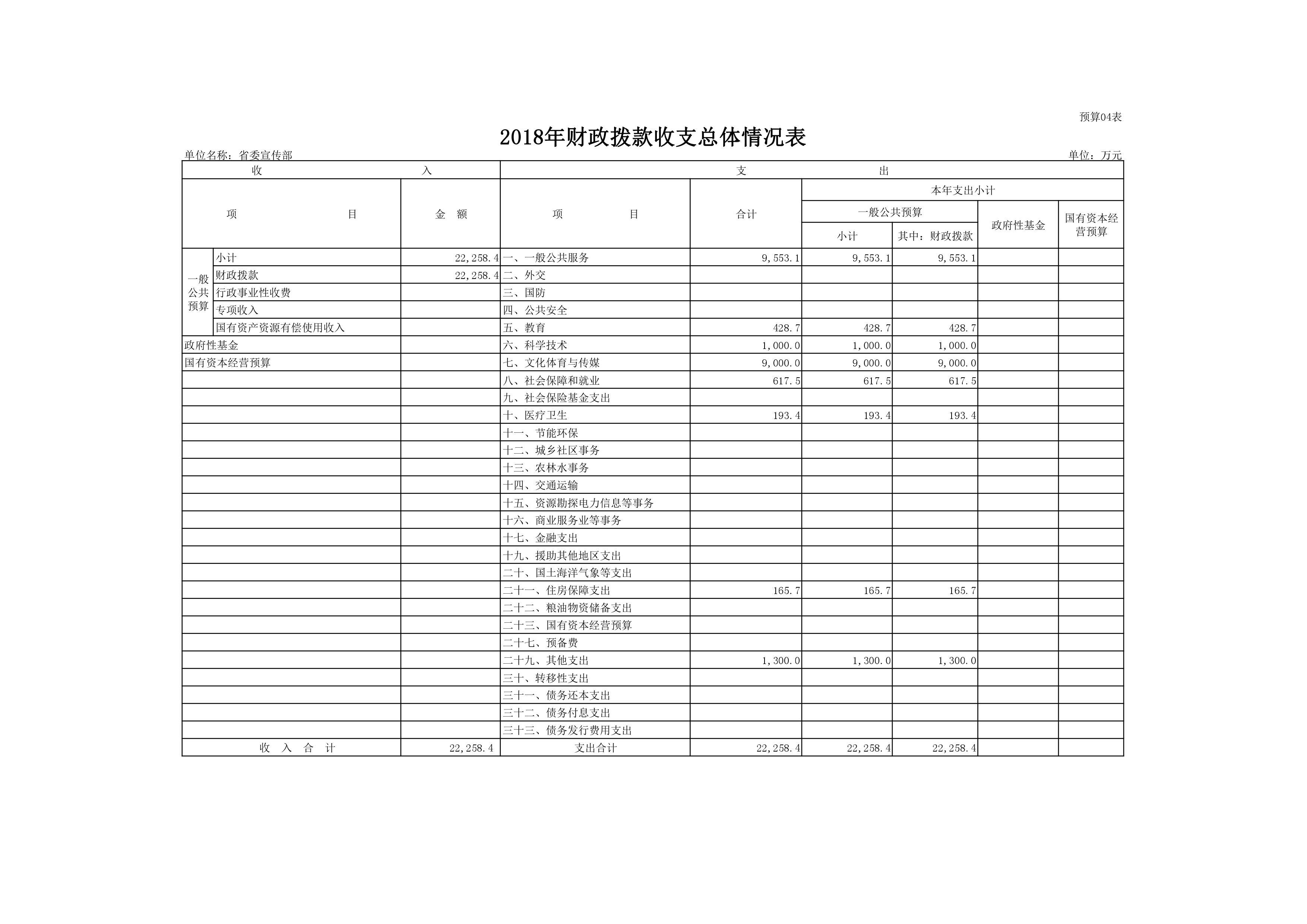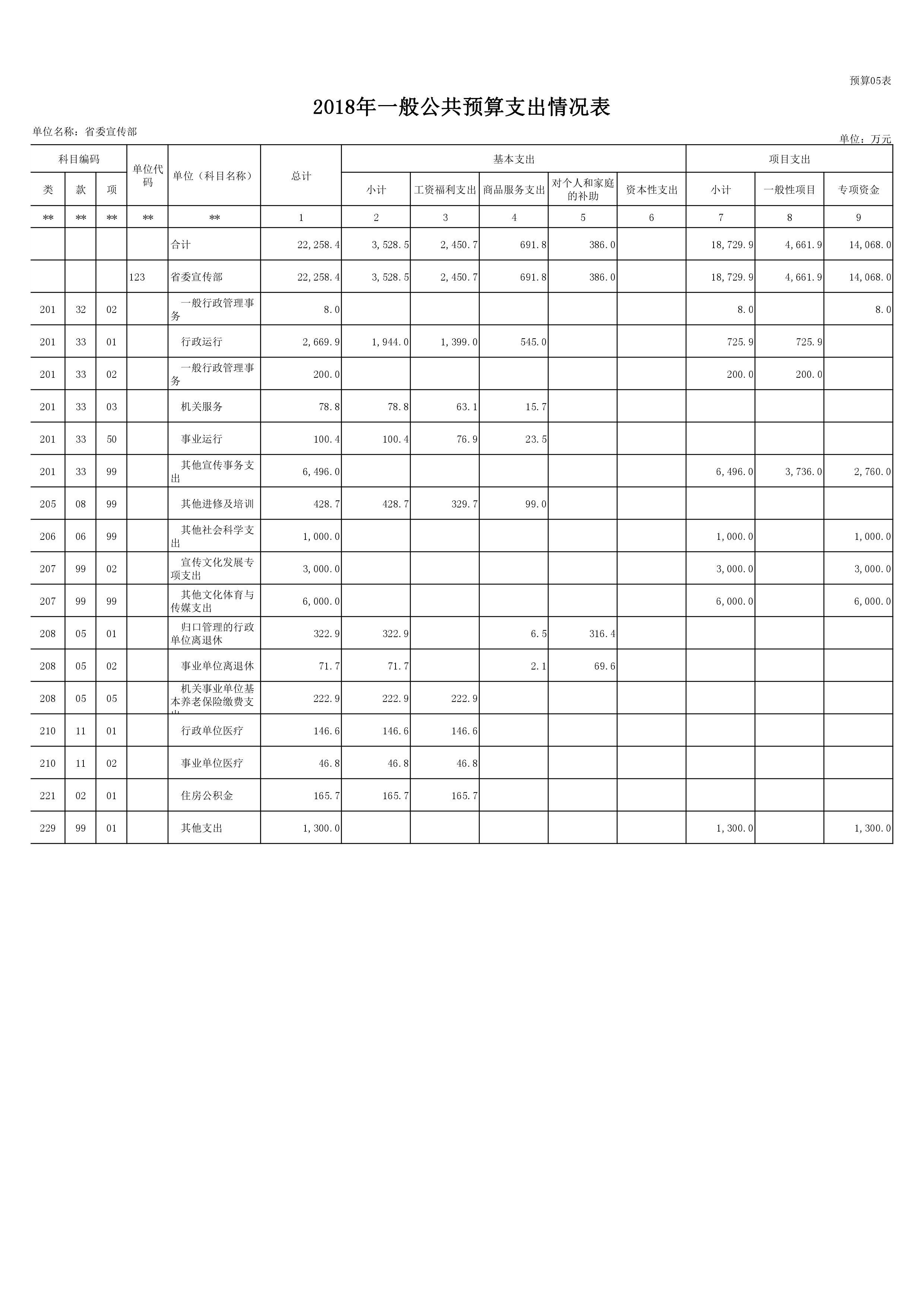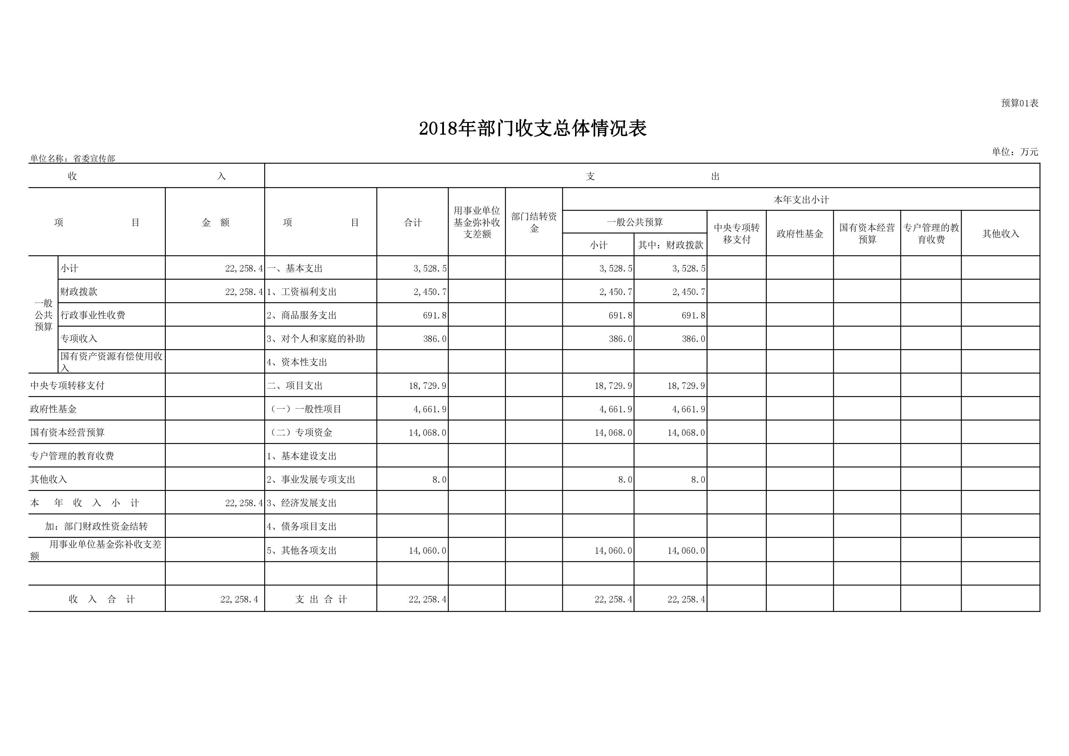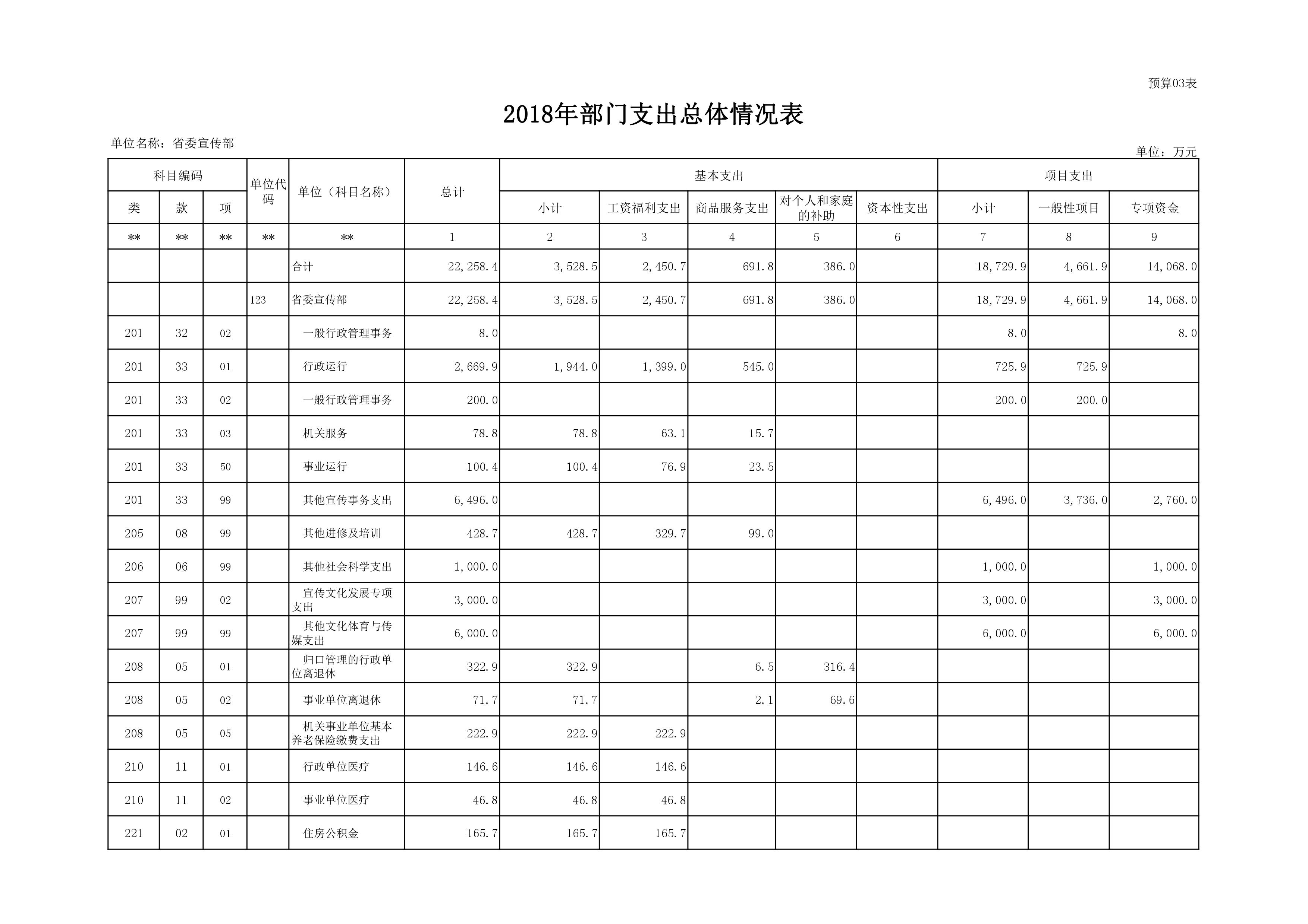 2018年度中共河南省委宣傳部部門預算公開