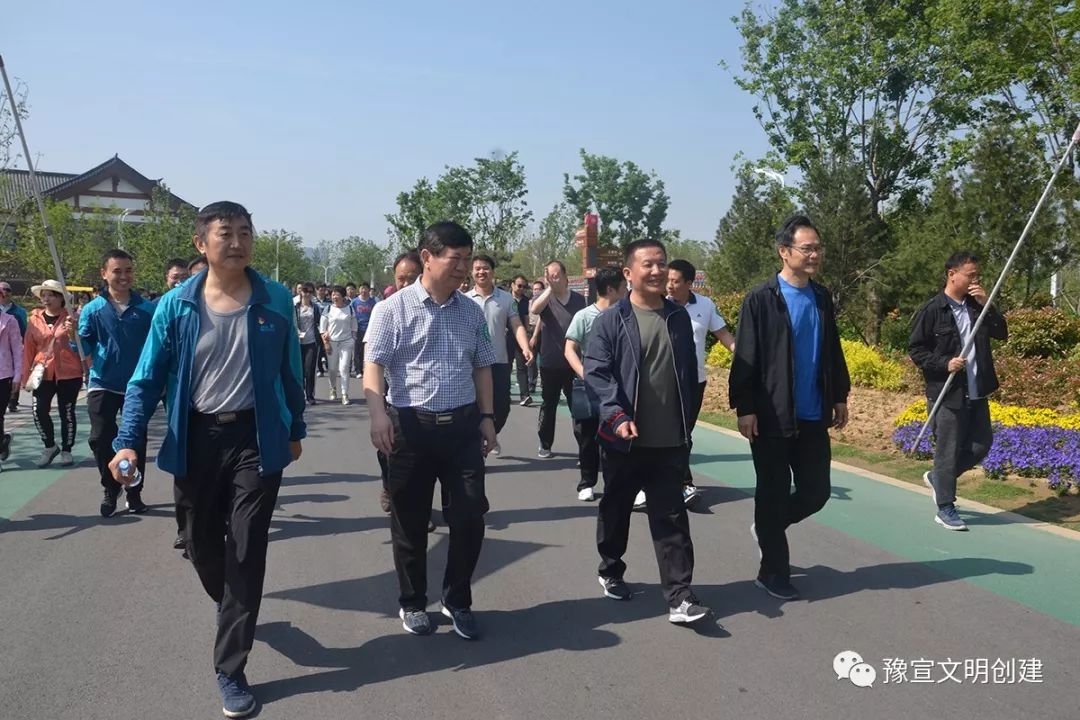 “最美人間四月天”,春暖花開,為倡導(dǎo)健康生活、快樂工作,鼓勵部機關(guān)干部職工積極參加戶外體育鍛煉,4月28日,省委宣傳部機關(guān)在鄭州園博園開展“新時代新征程 活力健康伴我行”健步走活動。常務(wù)副部長蘇長青同志、省文明辦專職副主任王飛同志、省委網(wǎng)信辦副主任蔡新民同志、副巡視員趙鋼同志與90多名干部職工共同參加了本次活動。鄭州市委宣傳部、鄭州航空港實驗區(qū)管委會、鄭州園博園管理中心的干部職工也積極加入了本次健步走活動。