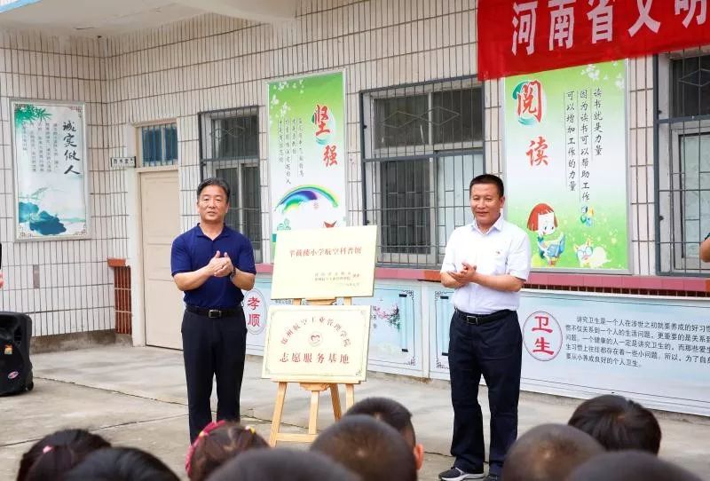 7月11日,河南省委宣傳部常務(wù)副部長蘇長青、副部長張曼如、省文明辦專職副主任王飛等同志帶領(lǐng)部機關(guān)有關(guān)人員,與鄭州航空管理學(xué)院有關(guān)領(lǐng)導(dǎo)和志愿者師生一行,分別到省委宣傳部幫扶貧困村周口市西華縣半截樓村和漯河市舞陽縣余莊村,為省文明辦、鄭州航院援建的航空科普館和鄭州航院志愿服務(wù)基地舉行揭牌儀式。